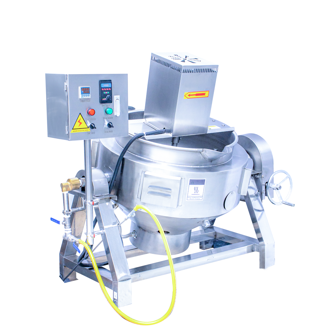 - Pengadukan Konstan: Pengaduk otomatis di bagian atas memastikan bahan baku tercampur secara homogen selama proses memasak, yang sangat penting untuk produk kental seperti selai, filling custard, atau adonan permen.