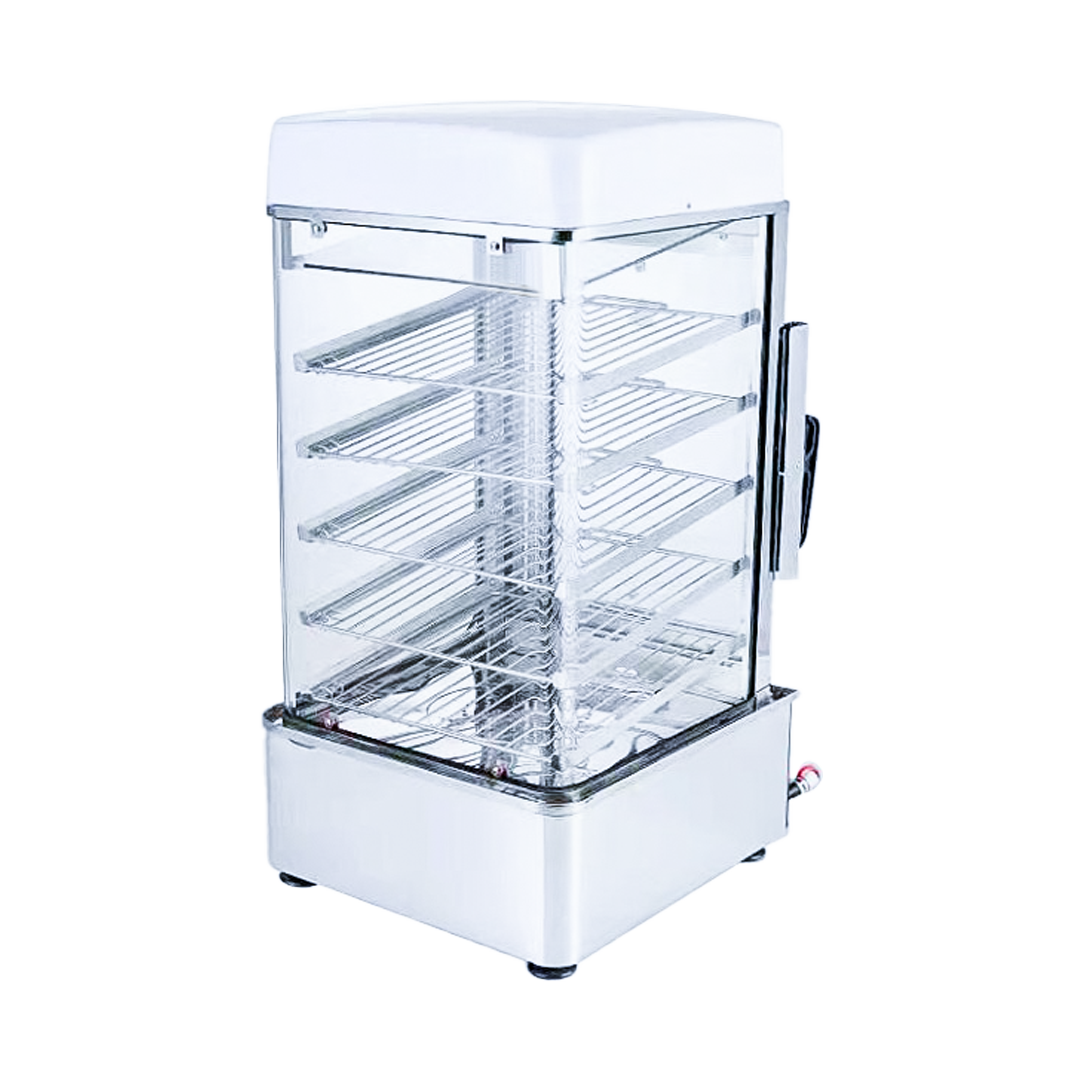 Electric Bun Steamer adalah peralatan komersial yang berfungsi sebagai kabinet penghangat dan pengukus pajangan untuk menjaga roti, buns (bakpao), atau makanan sejenis tetap panas, lembap, dan siap saji. Mesin ini umum ditemukan di restoran, kantin, atau toko makanan cepat saji.