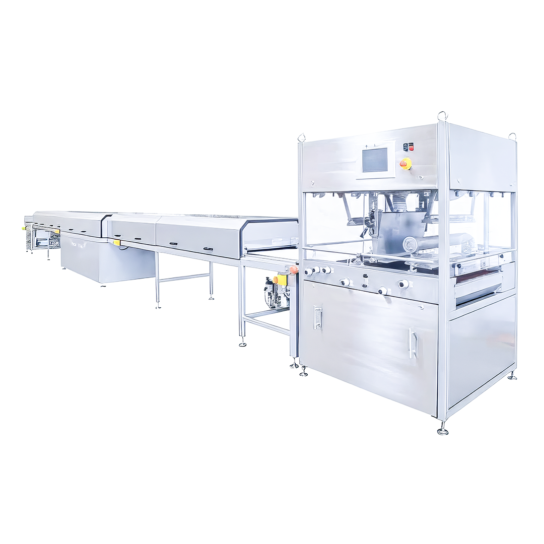 FOTEC Enrober & Cooling Tunnel adalah sistem otomatisasi canggih yang dirancang untuk memberikan lapisan (enrobing) yang presisi dan konsisten pada berbagai produk makanan seperti biskuit, wafer, dan bar. Dengan kombinasi mesin pelapis (Enrober) dan terowongan pendingin (Cooling Tunnel), produk Anda akan mendapatkan hasil akhir yang mengkilap, merata, dan siap untuk dikemas dalam waktu singkat.