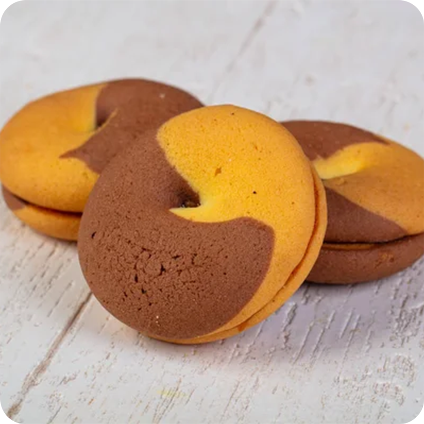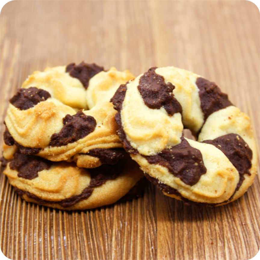 - Produksi Multipel Warna: Mesin ini secara spesifik dirancang untuk menangani dua jenis adonan (atau isian) secara bersamaan, memungkinkan penciptaan cookies dengan desain swirl atau efek warna ganda (tricolor/multicolor) seperti yang terlihat pada gambar produk.