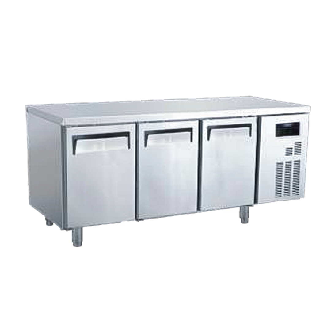 Under Counter Freezer dan Chiller adalah unit pendingin komersial horizontal yang dirancang efisien untuk diletakkan di bawah meja dapur. Keduanya menawarkan fungsi ganda untuk menghemat ruang: menyediakan permukaan kerja (counter top) di bagian atas dan ruang penyimpanan di bagian bawah.